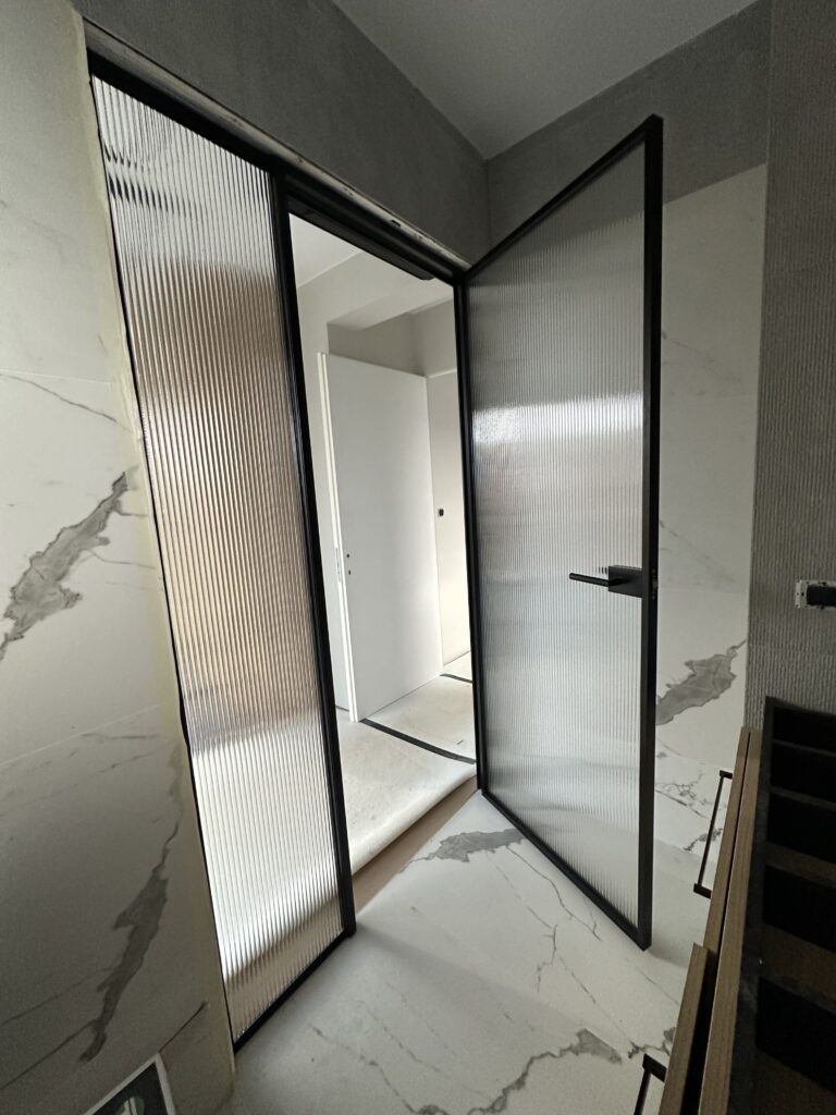 Za vas smo pripravili bogato izbiro kaljenega stekla, ki ga lahko graviramo, peskamo ali potiskamo po vaših željah. Odločite se lahko za prozorna vrata, ki pustijo svetlobi prosto pot, ali si zagotovite nekaj intime s peskanjem, gravuro ali potiskom. Na voljo imamo različna vodila z mehkim odpiranjem in zapiranjem ter različne ročaje.